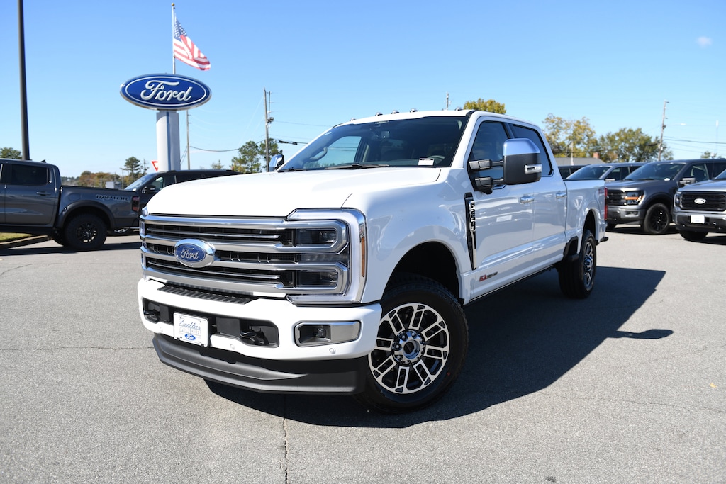 5th Wheel/Gooseneck Hitch Prep Package, Ford Connectivity Package (1-Year Included), FX4 Off-Road Package (Hill Descent Control, Off-Road Specifically Tuned Shock Absorbers, and Unique FX4 Off-Road Box Decal), High Capacity 11.6" Axle Upgrade Package, Order Code 703A, Platinum Plus Package (Illuminated Scuff Plates, Premium Leather IP Topper, Premium Luxury Leather-Wrapped Steering Wheel, Premium Venetian Leather Door Panel, Pro Power Onboard - 2kW, Satin Chrome Door Handles, Twin Panel Power Moonroof, Unique Platinum Plus Luxury Lthr 40/Console/40 Seats, Unique Satin Finish Grille, Unique Split Center Console Armrest, Upfitter Switches (6), and Wheels: 20" Bright Machined Aluminum), F-250 >10K GVWR Package, Internet access capable: 5G Modem - Ford Connectivity Package, 4WD, 14 Speakers, 34 Gallon Fuel Tank, Active Cruise Control, Auto High-beam Headlights, Bumpers: body-color, Electronic-Locking w/3.31 Axle Ratio, Front Bucket Seats, Front dual zone A/C, Gooseneck Hitch Kit (Pre-Installed), Heated front seats, Heated rear seats, Heated steering wheel, LED Roof Clearance Lights, Memory seat, Navigation system: Connected Navigation, Power driver seat, Power passenger seat, Power-Deployable Running Boards, Radio: B&O Unleashed Sound System by Bang & Olufsen, Remote keyless entry, SecuriCode Keyless Entry Keypad (Driver's Side), SiriusXM w/360L, SYNC 4 w/Enhanced Voice Recognition, Tough Bed Spray-In Bedliner, Ventilated front seats, Wheels: 20" Bright Machined & Painted Aluminum, 4-Wheel Disc Brakes, ABS brakes, Adjustable pedals, Air Conditioning, AM/FM radio: SiriusXM with 360L, Auto-dimming Rear-View mirror, Automatic temperature control, Brake assist, Compass, Delay-off headlights, Driver door bin, Driver vanity mirror, Dual front impact airbags, Dual front side impact airbags, Electronic Stability Control, Emergency communication system: SYNC 4 911 Assist, Flow-Through Console, Front anti-roll bar, Front Center Armrest, Front fog lights, Front License Plate Bracket, Front reading lights, Fully automatic headlights, Garage door transmitter, Heated door mirrors, Illuminated entry, Low tire pressure warning, Outside temperature display, Overhead airbag, Overhead console, Panic alarm, Passenger door bin, Passenger vanity mirror, Pedal memory, Power door mirrors, Power steering, Power windows, Rain sensing wipers, Rear reading lights, Rear seat center armrest, Rear step bumper, Rear window defroster, Security system, Speed control, Split folding rear seat, Steering wheel mounted audio controls, Tachometer, Telescoping steering wheel, Tilt steering wheel, Traction control, Trip computer, Turn signal indicator mirrors, and Variably intermittent wipers.