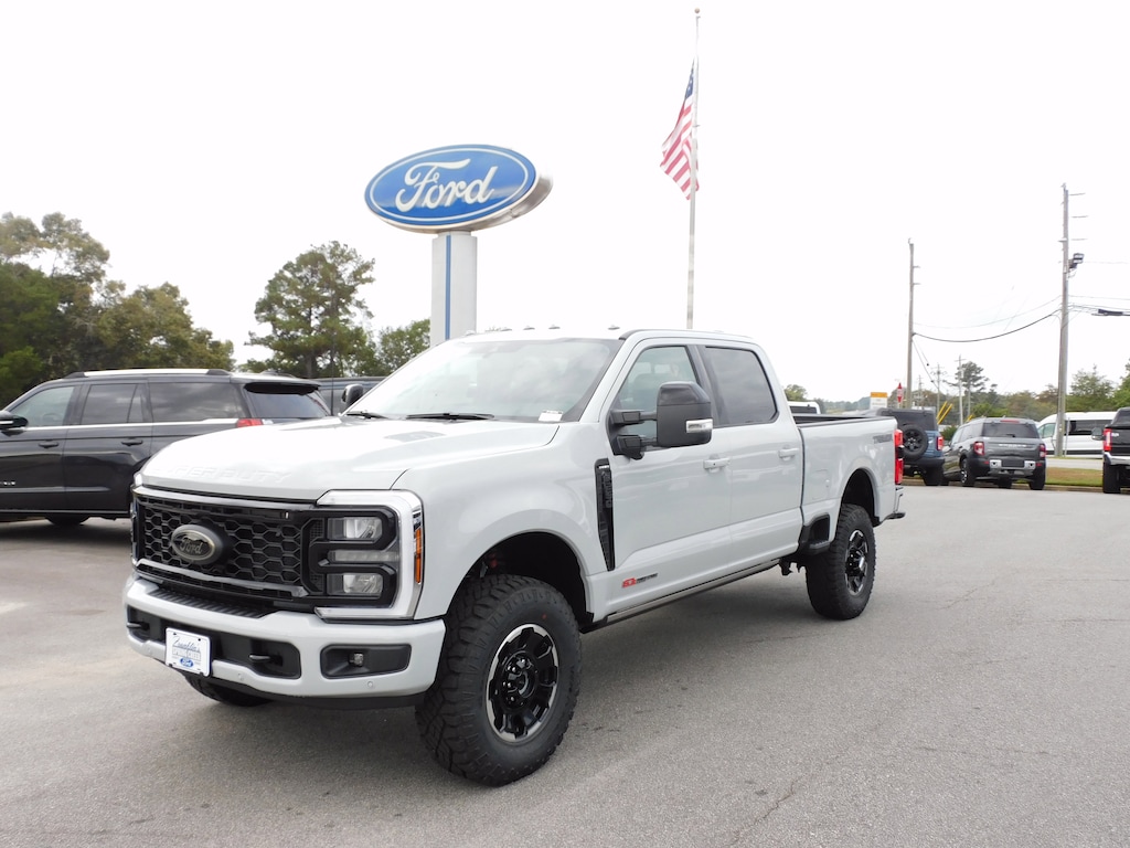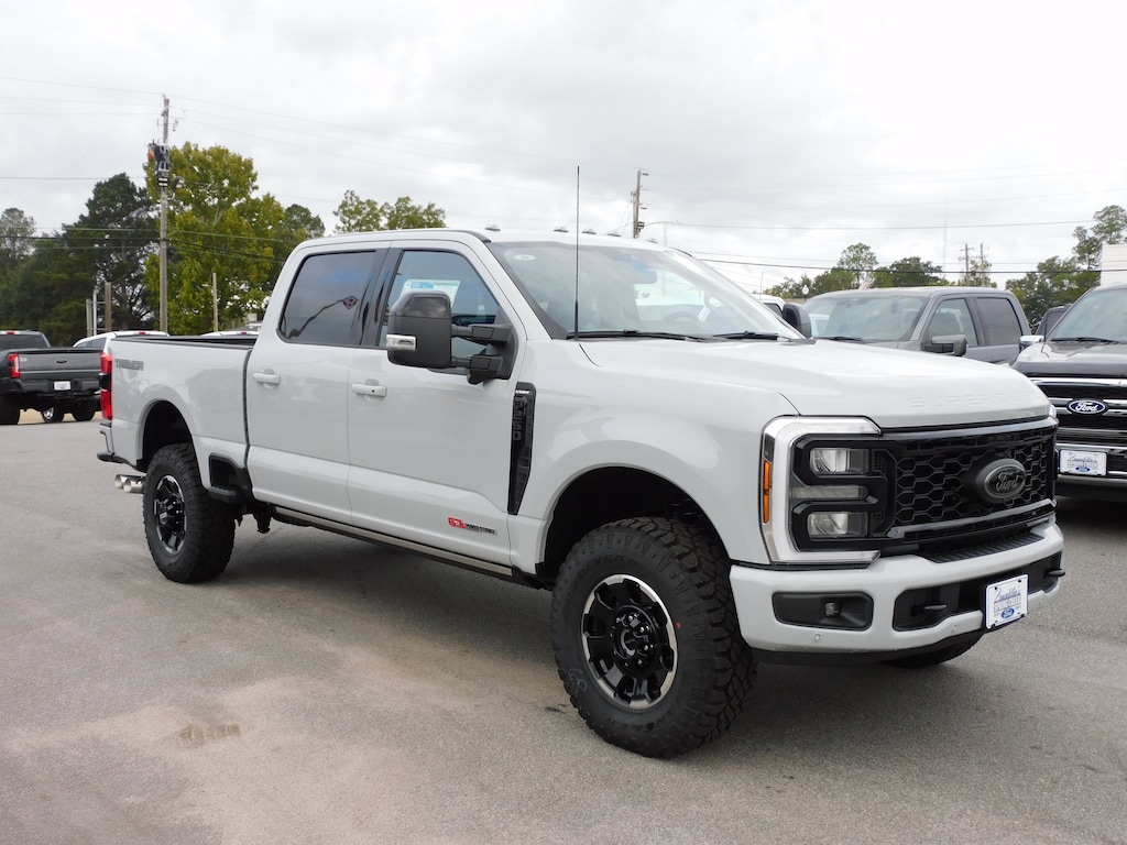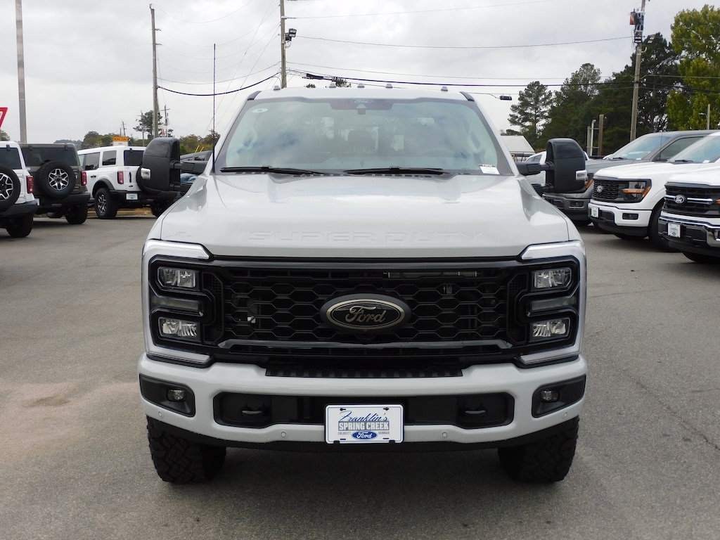 Black Appearance Package (Black Painted Front Grille Surround, Body Color Front & Rear Bumpers, Ebony Black Painted Mirror Caps, Rear Wheel Well Liners (Pre-Installed), and Tough Bed Spray-In Bedliner), Ford Connectivity Package (1-Year Included), High Capacity 11.6" Axle Upgrade Package, Lariat Premium Package (Power-Sliding Rear-Window w/Defrost, Privacy Glass, Lane Departure Warning System, Pro Trailer Backup Assist, and Pro Trailer Hitch Assist), Order Code 608A, Tremor Off-Road Package (Wheels: 18" Ebony Black Machined & Painted Aluminum and Tremor Off-Road Decal), F-250 >10K GVWR Package, Internet access capable: 5G Modem - Ford Connectivity Package, 4WD, 34 Gallon Fuel Tank, Active Cruise Control, Auto High-beam Headlights, Electronic-Locking w/3.55 Axle Ratio, Front Bucket Seats, Front dual zone A/C, Heated front seats, Heated rear seats, Heated steering wheel, LED Roof Clearance Lights, Memory seat, Power driver seat, Power passenger seat, Power-Deployable Running Boards, Radio: B&O Sound System by Bang & Olufsen, SiriusXM w/360L, SYNC 4 w/Enhanced Voice Recognition, Ventilated front seats, 4-Wheel Disc Brakes, 8 Speakers, ABS brakes, Adjustable pedals, Air Conditioning, AM/FM radio: SiriusXM with 360L, Auto-dimming Rear-View mirror, Automatic temperature control, BLIS w/Cross-Traffic Alert, Brake assist, Compass, Delay-off headlights, Driver door bin, Driver vanity mirror, Dual front impact airbags, Dual front side impact airbags, Electronic Stability Control, Emergency communication system: SYNC 4 911 Assist, Flow-Through Console, Front ActiveX Trimmed 40/Console/40 Seats, Front anti-roll bar, Front Center Armrest, Front fog lights, Front License Plate Bracket, Front reading lights, Fully automatic headlights, Garage door transmitter, Heated door mirrors, Illuminated entry, Low tire pressure warning, Navigation system: Connected Navigation, Outside temperature display, Overhead airbag, Overhead console, Panic alarm, Passenger door bin, Passenger vanity mirror, Pedal memory, Power door mirrors, Power steering, Power windows, Rain sensing wipers, Rear Parking Sensors, Rear reading lights, Rear seat center armrest, Rear step bumper, Rear window defroster, Remote keyless entry, Security system, Speed control, Split folding rear seat, Steering wheel mounted audio controls, Tachometer, Telescoping steering wheel, Tilt steering wheel, Traction control, Trip computer, Turn signal indicator mirrors, and Variably intermittent wipers.