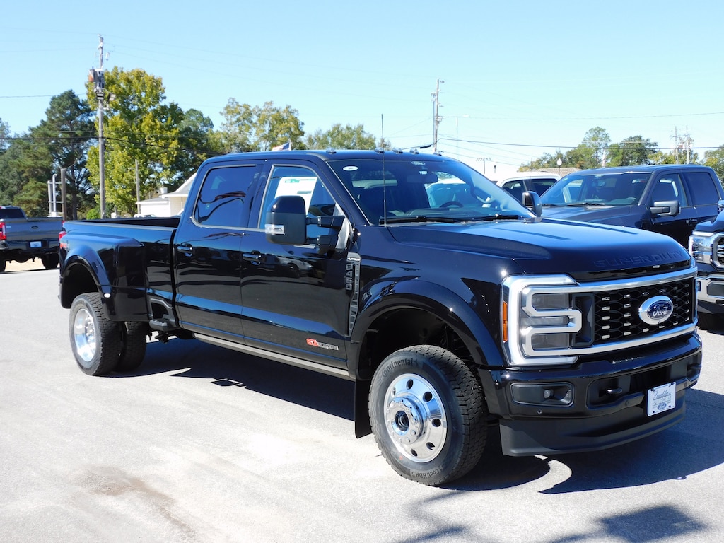 Ford Connectivity Package (1-Year Included), GVWR: 14,000 lb Payload Package, Order Code 773A, Internet access capable: 5G Modem - Ford Connectivity Package, 4WD, 19.5" Forged Polished Aluminum Wheels, 360-Degree Camera, Active Cruise Control, Auto High-beam Headlights, Bumpers: body-color, Dual rear wheels, Front Bucket Seats, Front dual zone A/C, Front Wheel Well Liners, Gooseneck Dual Hitch Kit, Head-Up Display, Heated Front Seats, Heated rear seats, Heated steering wheel, Limited Slip w/4.30 Axle Ratio, Memory seat, Power driver seat, Power passenger seat, Power-Deployable Running Boards, Power-Sliding Rear-Window w/Defrost, PowerScope Trailer Tow Mirrors w/Heat, Radio: B&O Unleashed Sound System by Bang & Olufsen, SecuriCode Wireless Keyless Entry Keypad, SYNC 4 w/Enhanced Voice Recognition, Tailgate Step & Handle, Tough Bed Spray-In Bedliner, Twin Panel Power Moonroof, Upfitter Switches (6), Ventilated front seats, 4-Wheel Disc Brakes, ABS brakes, Adjustable pedals, Air Conditioning, AM/FM radio: SiriusXM with 360L, Auto-dimming Rear-View mirror, Automatic temperature control, Brake assist, Compass, Delay-off headlights, Driver door bin, Driver vanity mirror, Dual front impact airbags, Dual front side impact airbags, Electronic Stability Control, Emergency communication system: SYNC 4 911 Assist, Exterior Parking Camera Rear, Flow-Through Console, Front & Rear Parking Sensors, Front anti-roll bar, Front Center Armrest, Front fog lights, Front License Plate Bracket, Front reading lights, Fully automatic headlights, Garage door transmitter, Heated door mirrors, Hill Descent Control, Illuminated entry, LED Box Lighting, LED Fog Lamps, Low tire pressure warning, Navigation system: Connected Navigation, Outside temperature display, Overhead airbag, Overhead console, Panic alarm, Passenger door bin, Passenger vanity mirror, Pedal memory, Power door mirrors, Power steering, Power windows, Privacy Glass, Rain sensing wipers, Rear anti-roll bar, Rear Parking Sensors, Rear reading lights, Rear seat center armrest, Rear step bumper, Rear window defroster, Remote keyless entry, Security system, SiriusXM w/360L, Speed control, Split folding rear seat, Steering wheel mounted audio controls, Tachometer, Telescoping steering wheel, Tilt steering wheel, Traction control, Trip computer, Turn signal indicator mirrors, and Variably intermittent wipers.