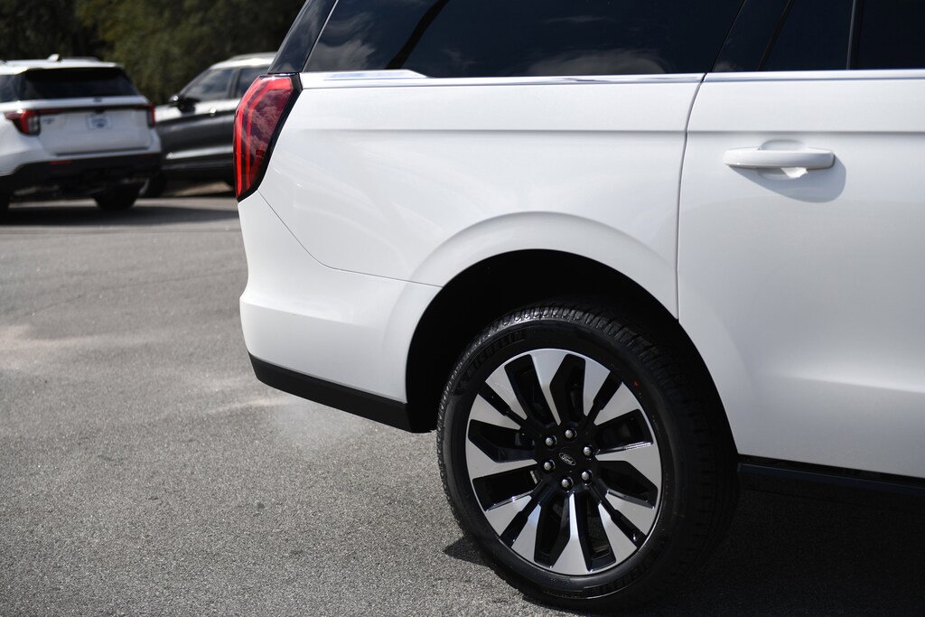 Driver's Package (Radio: B&O Play Unleashed), Equipment Group 600A Standard Package (2nd Row Power-Folding Captain's Chairs, 3.73 Axle Ratio, BlueCruise Equipped (90-Day Trial), Heated and Ventilated Leather Front Captain's Chairs, and Power Tilt/Telescopic Steering Wheel with Memory), Apple CarPlay/Android Auto, Auto High-beam Headlights, Black Onyx Painted Power Deployable Running Boards, Exterior Parking Camera Rear, Front Bucket Seats, Front dual zone A/C, Heated front seats, Heated rear seats, Heated steering wheel, Memory seat, Power driver seat, Power passenger seat, Rear air conditioning, SiriusXM with 360L (3-Year Plan), Ventilated front seats, Wheels: 22" x 9.0" Ebony Bright Machined Face Aluminum, 3rd row seats: split-bench, 4-Wheel Disc Brakes, ABS brakes, Air Conditioning, AM/FM radio: SiriusXM with 360L, Auto-dimming door mirrors, Auto-dimming Rear-View mirror, Automatic temperature control, Brake assist, Bumpers: body-color, Compass, Delay-off headlights, Driver door bin, Driver vanity mirror, Dual front impact airbags, Dual front side impact airbags, Electronic Stability Control, Emergency communication system: 911 Assist, Four wheel independent suspension, Front and 2nd Rows Floor Liners Without Carper Mats, Front anti-roll bar, Front Center Armrest, Front License Plate Bracket, Front reading lights, Fully automatic headlights, Garage door transmitter, Genuine wood dashboard insert, Genuine wood door panel insert, Heated door mirrors, Illuminated entry, Intersection Assist, Leather steering wheel, Low tire pressure warning, Navigation System, Occupant sensing airbag, Outside temperature display, Overhead airbag, Overhead console, Panic alarm, Passenger door bin, Passenger vanity mirror, Power door mirrors, Power moonroof: Vista Roof, Power steering, Power windows, Radio data system, Rain sensing wipers, Rear anti-roll bar, Rear reading lights, Rear window defroster, Rear window wiper, Reclining 3rd row seat, Remote keyless entry, Security system, Speed control, Speed-sensing steering, Speed-Sensitive Wipers, Split folding rear seat, Spoiler, Steering wheel memory, Steering wheel mounted audio controls, Tachometer, Telescoping steering wheel, Tilt steering wheel, Traction control, Trip computer, Turn signal indicator mirrors, Variably intermittent wipers, and Voltmeter.