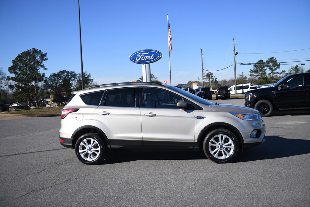 Recent Arrival! 2018 Ford Escape SE White Gold Metallic CARFAX One-Owner. Clean CARFAX. 4WD, Equipment Group 200A, Exterior Parking Camera Rear, Front Bucket Seats, Front dual zone A/C, Heated front seats, Power driver seat, Speed control, SYNC Communications & Entertainment System, Wheels: 17" Sparkle Silver-Painted Aluminum, 3.51 Axle Ratio, 4-Wheel Disc Brakes, 6 Speakers, ABS brakes, Air Conditioning, AM/FM radio: SiriusXM, Automatic temperature control, Brake assist, Bumpers: body-color, CD player, Compass, Delay-off headlights, Driver door bin, Driver vanity mirror, Dual front impact airbags, Dual front side impact airbags, Electronic Stability Control, Emergency communication system: 911 Assist, Four wheel independent suspension, Front anti-roll bar, Front Center Armrest, Front fog lights, Front reading lights, Fully automatic headlights, Heated Unique Cloth Front Bucket Seats, Illuminated entry, Knee airbag, Low tire pressure warning, Occupant sensing airbag, Outside temperature display, Overhead airbag, Overhead console, Panic alarm, Passenger door bin, Passenger vanity mirror, Power door mirrors, Power steering, Power windows, Radio data system, Radio: AM/FM Stereo w/Single-CD/MP3 Player, Rear anti-roll bar, Rear seat center armrest, Rear window defroster, Rear window wiper, Remote keyless entry, Roof rack: rails only, Security system, Speed-sensing steering, Split folding rear seat, Steering wheel mounted audio controls, Tachometer, Telescoping steering wheel, Tilt steering wheel, Traction control, Trip computer, Variably intermittent wipers, 4WD, Equipment Group 200A, Exterior Parking Camera Rear, Front Bucket Seats, Front dual zone A/C, Heated front seats, Power driver seat, Speed control, SYNC Communications & Entertainment System, Wheels: 17" Sparkle Silver-Painted Aluminum. EcoBoost 2.0L I4 GTDi DOHC Turbocharged VCT 4WD 6-Speed Automatic