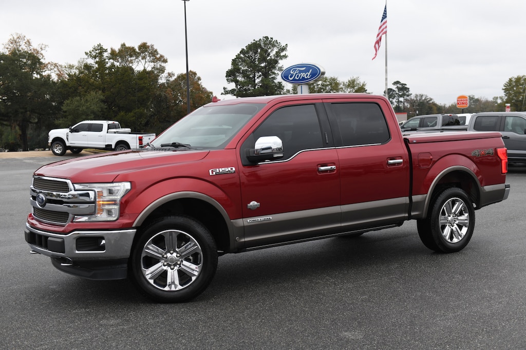 2019 Ford F-150 King Ranch DIESEL Ruby Red CARFAX One-Owner. 4WD, Adaptive Cruise Control, Auto High-beam Headlights, BLIS Blind Spot Information System, Bright Belt Moldings, Chrome Door Handles w/Body-Color Strap, Chrome Front & Rear Bumpers, Chrome Skull Caps on Exterior Mirrors, Class IV Trailer Hitch Receiver, Engine Oil Cooler, Equipment Group 601A Luxury, Front Bucket Seats, Front dual zone A/C, Heated front seats, Heated rear seats, Heated steering wheel, Inflatable Rear Safety Belts, King Ranch Chrome Appearance Package, Lane-Keeping System, Memory seat, Multi-Contour Driver & Passenger Seats, Power driver seat, Power passenger seat, Power-Deployable Running Boards, Pro Trailer Backup Assist, Radio: B&O Sound System by Bang & Olufsen, SiriusXM Radio, SYNC 3, Tailgate Step w/Tailgate Lift Assist, Technology Package, Trailer Tow Package, Twin Panel Moonroof, Upgraded Front Stabilizer Bar, Ventilated front seats, Voice-Activated Touchscreen Navigation, Wheels: 20" Chrome-Like PVD, 10 Speakers, 3.31 Axle Ratio, 4-Wheel Disc Brakes, ABS brakes, Active Park Assist, Adjustable pedals, Air Conditioning, AM/FM radio: SiriusXM, AppLink/Apple CarPlay and Android Auto, Auto tilt-away steering wheel, Auto-dimming door mirrors, Auto-dimming Rear-View mirror, Automatic temperature control, Brake assist, Compass, Delay-off headlights, Driver door bin, Driver vanity mirror, Dual front impact airbags, Dual front side impact airbags, Electronic Stability Control, Emergency communication system: SYNC 3 911 Assist, Exterior Parking Camera Rear, Front anti-roll bar, Front Center Armrest, Front fog lights, Front License Plate Bracket, Front reading lights, Front wheel independent suspension, Fully automatic headlights, Garage door transmitter, Genuine wood dashboard insert, Genuine wood door panel insert, GVWR: 7,050 lbs Payload Package, Heated door mirrors, Illuminated entry, Integrated Trailer Brake Controller, King Ranch Leather Bucket Seats, LED Sideview Mirror Spotlights, Low tire pressure warning, Navigation System, Occupant sensing airbag, Outside temperature display, Overhead airbag, Overhead console, Panic alarm, Passenger door bin, Passenger vanity mirror, Pedal memory, Power door mirrors, Power steering, Power windows, Radio data system, Rain sensing wipers, Rear Parking Sensors, Rear reading lights, Rear seat center armrest, Rear step bumper, Rear window defroster, Remote keyless entry, Security system, Speed control, Speed-sensing steering, Split folding rear seat, Steering wheel memory, Steering wheel mounted audio controls, Tachometer, Telescoping steering wheel, Tilt steering wheel, Traction control, Trip computer, Turn signal indicator mirrors, Variably intermittent wipers, Voltmeter, 4WD, Adaptive Cruise Control, Auto High-beam Headlights, BLIS Blind Spot Information System, Bright Belt Moldings, Chrome Door Handles w/Body-Color Strap, Chrome Front & Rear Bumpers, Chrome Skull Caps on Exterior Mirrors, Class IV Trailer Hitch Receiver, Engine Oil Cooler, Equipment Group 601A Luxury, Front Bucket Seats, Front dual zone A/C, Heated front seats, Heated rear seats, Heated steering wheel, Inflatable Rear Safety Belts, King Ranch Chrome Appearance Package, Lane-Keeping System, Memory seat, Multi-Contour Driver & Passenger Seats, Power driver seat, Power passenger seat, Power-Deployable Running Boards, Pro Trailer Backup Assist, Radio: B&O Sound System by Bang & Olufsen, SiriusXM Radio, SYNC 3, Tailgate Step w/Tailgate Lift Assist, Technology Package, Trailer Tow Package, Twin Panel Moonroof, Upgraded Front Stabilizer Bar, Ventilated front seats, Voice-Activated Touchscreen Navigation, Wheels: 20" Chrome-Like PVD. Priced below KBB Fair Purchase Price! 3.0L Power Stroke V6 Turbo Diesel 4WD 10-Speed Automatic