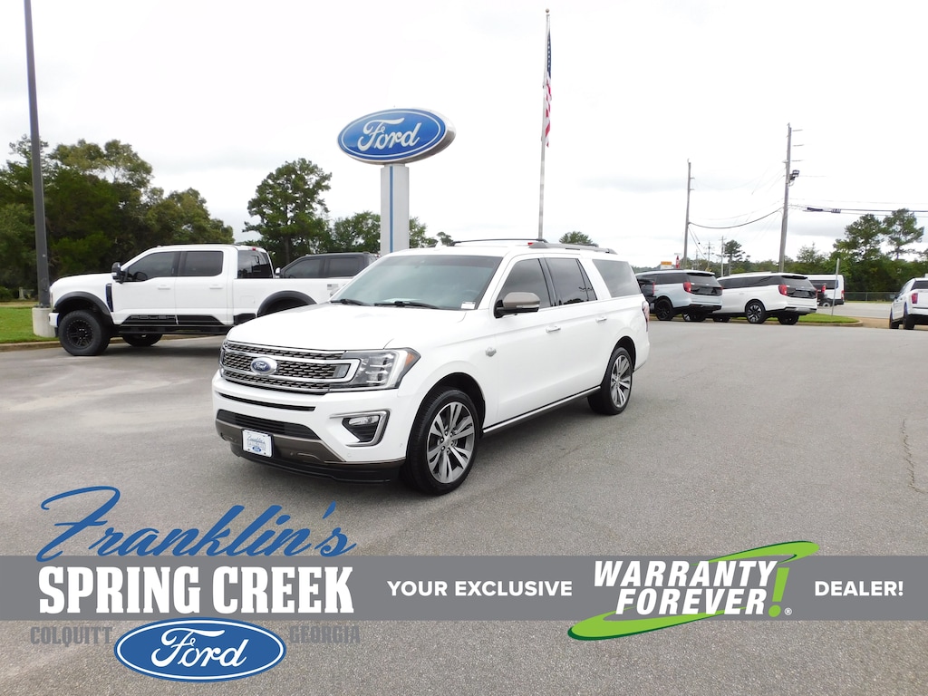 2020 Ford Expedition Max King Ranch Star White Metallic Tri-Coat Active Cruise Control, Adaptive suspension, Auto High-beam Headlights, Equipment Group 400A, Exterior Parking Camera Rear, Front Bucket Seats, Front dual zone A/C, Heated front seats, Heated rear seats, Heated steering wheel, Heated/Cooled Del Rio Leather Fr Captain's Chairs, Memory seat, Navigation System, Power driver seat, Power Liftgate, Power moonroof, Power passenger seat, Radio: B&O Sound System by Bang & Olufsen, Rear air conditioning, SiriusXM Satellite Radio, SYNC 3 Communications & Entertainment System, Ventilated front seats, Wheels: 22" 6-Spoke Painted Machined-Face Aluminum. EcoBoost 3.5L V6 GTDi DOHC 24V Twin Turbocharged RWD 10-Speed Automatic
