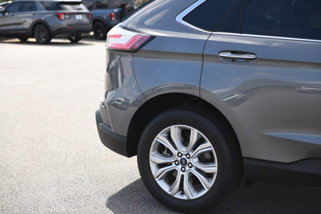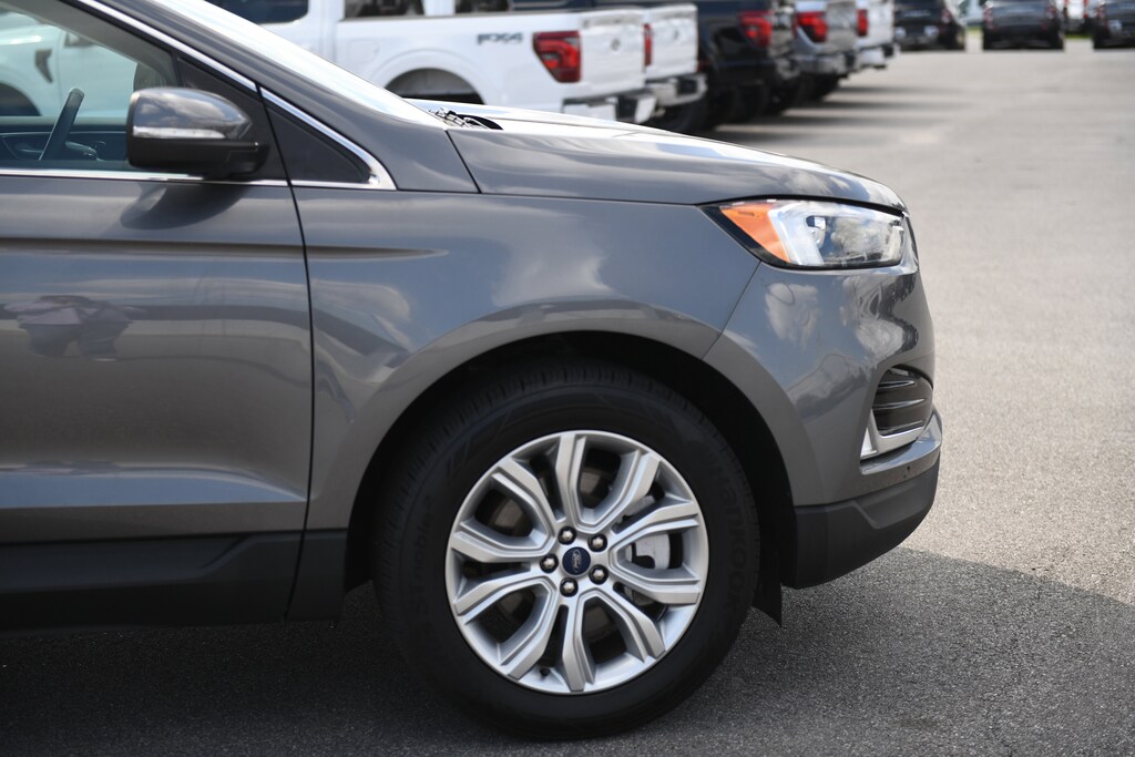 2022 Ford Edge Titanium Gray Metallic CARFAX One-Owner. AWD, Auto High-beam Headlights, Equipment Group 300A, Front Bucket Seats, Heated front seats, Heated steering wheel, Leather-Trimmed Heated Sport Bucket Seats, Memory seat, Panoramic Vista Roof, Power driver seat, Power Liftgate, Power passenger seat, Wheels: 19" Luster Nickel-Painted Aluminum, 12 Speakers, 3.80 Axle Ratio, 4-Wheel Disc Brakes, ABS brakes, Air Conditioning, AM/FM radio: SiriusXM with 360L, Auto-dimming Rear-View mirror, Automatic temperature control, Brake assist, Bumpers: body-color, Compass, Delay-off headlights, Driver door bin, Driver vanity mirror, Dual front impact airbags, Dual front side impact airbags, Electronic Stability Control, Emergency communication system: SYNC 4 911 Assist, FordPass Connect, Four wheel independent suspension, Front anti-roll bar, Front Center Armrest w/Storage, Front dual zone A/C, Front fog lights, Front reading lights, Fully automatic headlights, Garage door transmitter, Heated door mirrors, Illuminated entry, Knee airbag, Low tire pressure warning, Occupant sensing airbag, Outside temperature display, Overhead airbag, Overhead console, Panic alarm, Passenger door bin, Passenger vanity mirror, Power door mirrors, Power steering, Power windows, Radio: B&O Sound System by Bang & Olufsen, Rain sensing wipers, Rear anti-roll bar, Rear reading lights, Rear seat center armrest, Rear window defroster, Rear window wiper, Remote keyless entry, Security system, SiriusXM w/360L, Speed control, Speed-Sensitive Wipers, Split folding rear seat, Spoiler, Steering wheel mounted audio controls, SYNC 4A w/Enhanced Voice Recognition, Tachometer, Telescoping steering wheel, Tilt steering wheel, Traction control, Trip computer, Turn signal indicator mirrors, Variably intermittent wipers, AWD, Auto High-beam Headlights, Equipment Group 300A, Front Bucket Seats, Heated front seats, Heated steering wheel, Leather-Trimmed Heated Sport Bucket Seats, Memory seat, Panoramic Vista Roof, Power driver seat, Power Liftgate, Power passenger seat, Wheels: 19" Luster Nickel-Painted Aluminum. Priced below KBB Fair Purchase Price! EcoBoost 2.0L I4 GTDi DOHC Turbocharged VCT AWD 8-Speed Automatic