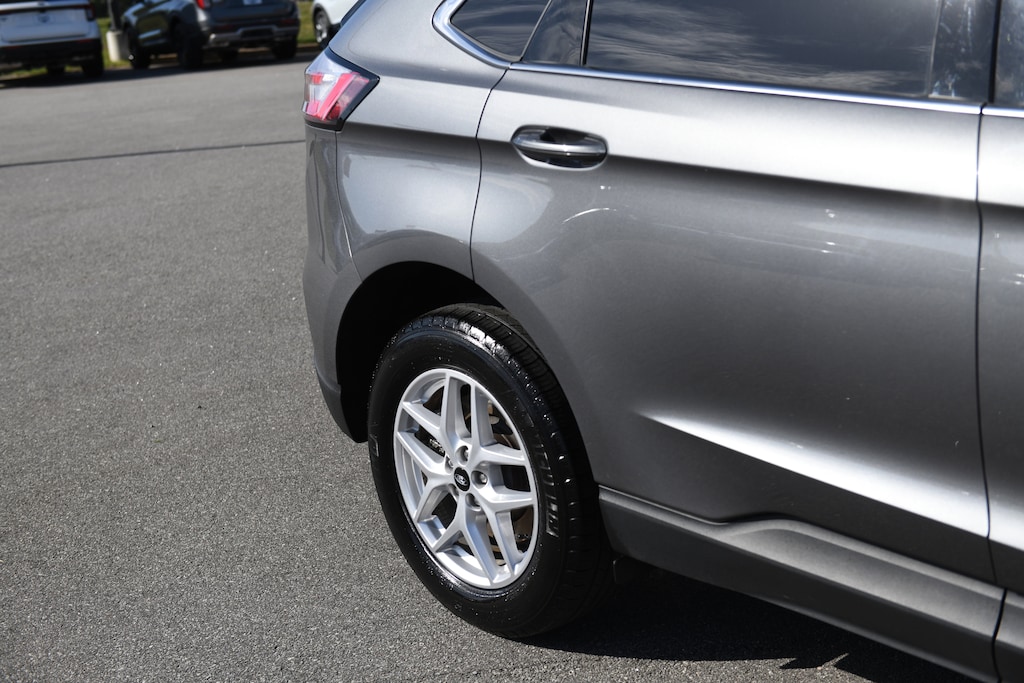 Recent Arrival! 2023 Ford Edge SEL Gray Metallic CARFAX One-Owner. AWD, Auto High-beam Headlights, Equipment Group 201A, Front Bucket Seats, Front dual zone A/C, Heated front seats, Power driver seat, Rear Parking Sensors, SiriusXM w/360L, Speed control, SYNC 4A w/Enhanced Voice Recognition, Wheels: 18" Sparkle Silver-Painted Aluminum, 3.80 Axle Ratio, 4-Wheel Disc Brakes, 6 Speakers, ABS brakes, ActiveX Seating Material Heated Bucket Seats, Air Conditioning, AM/FM radio: SiriusXM with 360L, Auto-dimming Rear-View mirror, Automatic temperature control, Brake assist, Bumpers: body-color, Compass, Delay-off headlights, Driver door bin, Driver vanity mirror, Dual front impact airbags, Dual front side impact airbags, Electronic Stability Control, Emergency communication system: SYNC 4 911 Assist, FordPass Connect, Four wheel independent suspension, Front & Rear Floor Liners w/o Carpet Mats, Front anti-roll bar, Front Center Armrest w/Storage, Front reading lights, Fully automatic headlights, Heated door mirrors, Illuminated entry, Knee airbag, Leather steering wheel, Leather-Wrapped Steering Wheel, Low tire pressure warning, Occupant sensing airbag, Outside temperature display, Overhead airbag, Overhead console, Panic alarm, Passenger door bin, Passenger vanity mirror, Power door mirrors, Power passenger seat, Power steering, Power windows, Radio: AM/FM Stereo/MP3 Capable, Rear anti-roll bar, Rear reading lights, Rear seat center armrest, Rear window defroster, Rear window wiper, Remote keyless entry, Speed-Sensitive Wipers, Split folding rear seat, Spoiler, Steering wheel mounted audio controls, Tachometer, Telescoping steering wheel, Tilt steering wheel, Traction control, Trip computer, Variably intermittent wipers, AWD, Auto High-beam Headlights, Equipment Group 201A, Front Bucket Seats, Front dual zone A/C, Heated front seats, Power driver seat, Rear Parking Sensors, SiriusXM w/360L, Speed control, SYNC 4A w/Enhanced Voice Recognition, Wheels: 18" Sparkle Silver-Painted Aluminum. EcoBoost 2.0L I4 GTDi DOHC Turbocharged VCT AWD 8-Speed Automatic