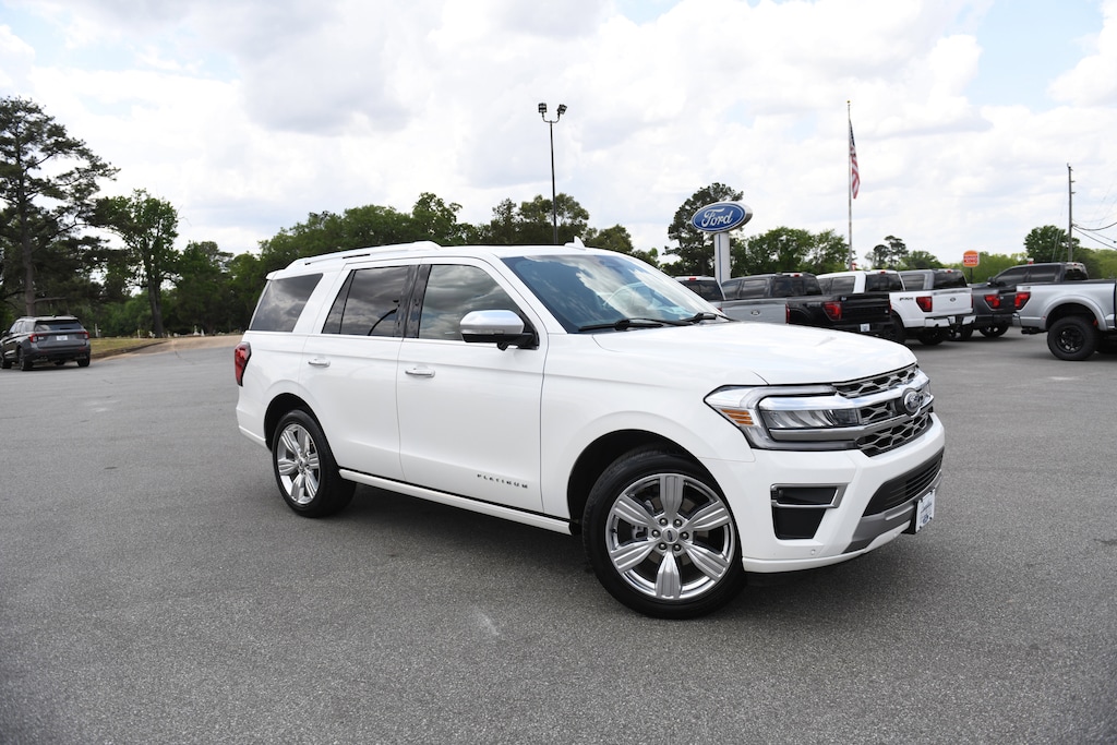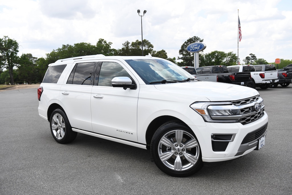 Recent Arrival! 2023 Ford Expedition Platinum Star White Metallic Tri-Coat CARFAX One-Owner. Clean CARFAX. 22 Speakers, 360-Degree Camera w/Trailer Reverse Guidance, Active Cruise Control, Adaptive suspension, Auto High-beam Headlights, Equipment Group 600A Standard Package, Exterior Parking Camera Rear, Front Bucket Seats, Front dual zone A/C, Heated front seats, Heated rear seats, Htd/Ventilated Prem Lthr Front Captain's Chairs (DISC), Memory seat, Navigation System, Power driver seat, Power Liftgate, Power moonroof, Power passenger seat, Radio: B&O Unleashed Sound System by Bang & Olufsen, Rear air conditioning, SiriusXM w/360L, SYNC 4 w/Enhanced Voice Recognition, Ventilated front seats, Wheels: 22" 6-Spoke Polished Aluminum, 26mm Engine Radiator, 3rd row seats: split-bench, 4-Wheel Disc Brakes, ABS brakes, Active Park Assist 2.0 Removal, Adjustable pedals, Air Conditioning, AM/FM radio, Auto-dimming door mirrors, Auto-dimming Rear-View mirror, Automatic temperature control, Brake assist, Bumpers: body-color, Compass, Delay-off headlights, Driver door bin, Driver vanity mirror, Dual front impact airbags, Dual front side impact airbags, Electronic Stability Control, Emergency communication system: SYNC 4 911 Assist, Four wheel independent suspension, Front anti-roll bar, Front Center Armrest, Front fog lights, Front License Plate Bracket, Front reading lights, Fully automatic headlights, Garage door transmitter, Genuine wood console insert, Genuine wood dashboard insert, Genuine wood door panel insert, Hands-Free Foot-Activated Liftgate Removal (DISC), Heated door mirrors, Heated steering wheel, Heavy-Duty Trailer Tow Package, Illuminated entry, Integrated Trailer Brake Controller, Leather steering wheel, Low tire pressure warning, Occupant sensing airbag, Outside temperature display, Overhead airbag, Overhead console, Panic alarm, Passenger door bin, Passenger vanity mirror, Pedal memory, Power door mirrors, Power steering, Power windows, Pro Trailer Backup Assist, Radio data system, Rain sensing wipers, Rear anti-roll bar, Rear audio controls, Rear reading lights, Rear window defroster, Rear window wiper, Reclining 3rd row seat, Remote keyless entry, Second Row Power Windows Removal, Security system, Speed control, Speed-sensing steering, Speed-Sensitive Wipers, Split folding rear seat, Spoiler, Steering wheel memory, Steering wheel mounted audio controls, Tachometer, Telescoping steering wheel, Tilt steering wheel, Traction control, Trip computer, Turn signal indicator mirrors, Variably intermittent wipers, Voltmeter, 22 Speakers, 360-Degree Camera w/Trailer Reverse Guidance, Active Cruise Control, Adaptive suspension, Auto High-beam Headlights, Equipment Group 600A Standard Package, Exterior Parking Camera Rear, Front Bucket Seats, Front dual zone A/C, Heated front seats, Heated rear seats, Htd/Ventilated Prem Lthr Front Captain's Chairs (DISC), Memory seat, Navigation System, Power driver seat, Power Liftgate, Power moonroof, Power passenger seat, Radio: B&O Unleashed Sound System by Bang & Olufsen, Rear air conditioning, SiriusXM w/360L, SYNC 4 w/Enhanced Voice Recognition, Ventilated front seats, Wheels: 22" 6-Spoke Polished Aluminum. Priced below KBB Fair Purchase Price! EcoBoost 3.5L V6 GTDi DOHC 24V Twin Turbocharged RWD 10-Speed Automatic
