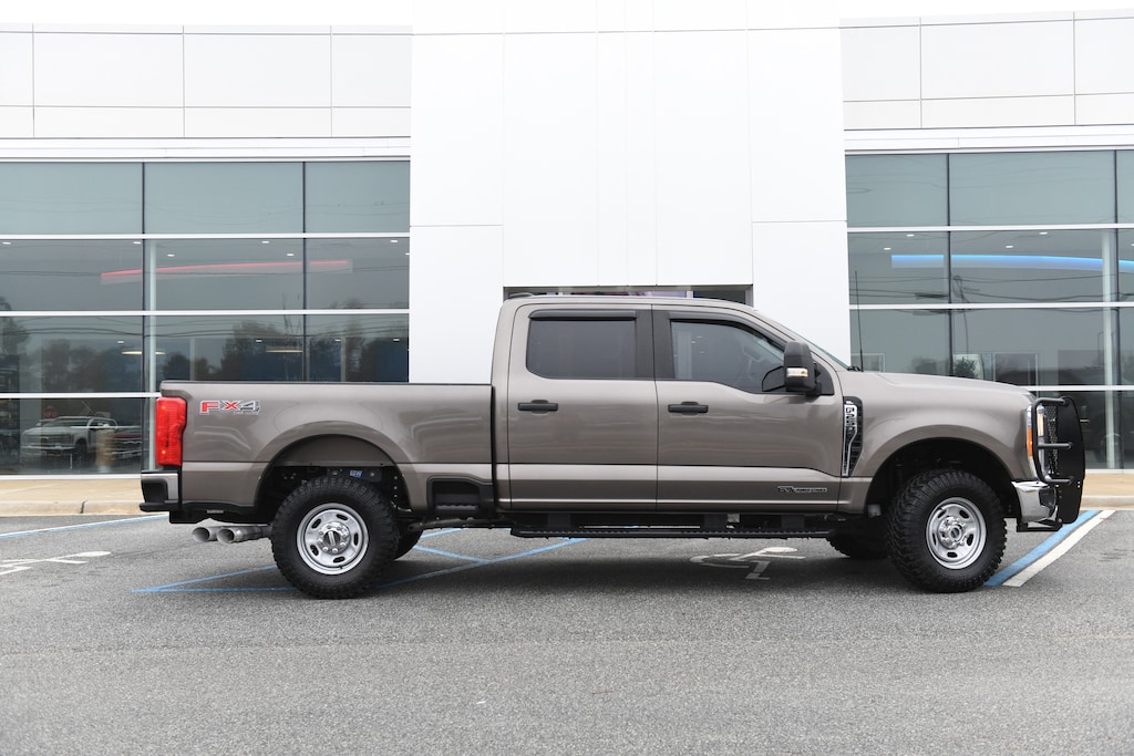 2023 Ford F-250SD XL Stone Gray Metallic CARFAX One-Owner. Clean CARFAX. New Tires, Fresh Oil Change, 4WD, 120V/400W Outlet, 34 Gallon Fuel Tank, Chrome Front Bumper, Electronic-Locking w/3.31 Axle Ratio, Exterior Parking Camera Rear, FX4 Off-Road Package, HD Vinyl 40/20/40 Split Bench Seat, Heavy-Service Front Suspension Package, LED Box Lighting, Order Code 600A, Platform Running Boards, Rear Electronic Locking Differential, Remote Start System, Speed control, SYNC 4, Tough Bed Spray-In Bedliner, Upfitter Switches (6), XL Chrome Package, XL Off-Road Package, 190 Amp Alternator, 4 Speakers, 4-Wheel Disc Brakes, ABS brakes, Air Conditioning, AM/FM radio, AM/FM Stereo w/MP3 Player, BoxLink, Brake assist, Camper Package, Chrome Rear Step Bumper, Compass, Delay-off headlights, Dual 68 AH/65 AGM Batteries, Dual front impact airbags, Dual front side impact airbags, Electronic Stability Control, Emergency communication system: SYNC 4 911 Assist, Front anti-roll bar, Front Center Armrest w/Storage, Front reading lights, Fully automatic headlights, GVWR: 10,000 lb Payload Package, Halogen Fog Lamps, Heated door mirrors, Hill Descent Control, Illuminated entry, Interior Work Surface, Low tire pressure warning, Off-Road Specifically Tuned Shock Absorbers, Outside temperature display, Overhead airbag, Overhead console, Panic alarm, Passenger vanity mirror, Power door mirrors, Power steering, Power windows, Privacy Glass, Rear reading lights, Rear Stabilizer Bar, Rear step bumper, Remote keyless entry, Split folding rear seat, Steering wheel mounted audio controls, Tachometer, Telescoping steering wheel, Tilt steering wheel, Traction control, Trip computer, Turn signal indicator mirrors, Unique FX4 Off-Road Box Decal, Variably intermittent wipers, Ranch Hand Grille Guard, B&W Gooseneck, Tint, 4WD, 120V/400W Outlet, 34 Gallon Fuel Tank, Chrome Front Bumper, Electronic-Locking w/3.31 Axle Ratio, Exterior Parking Camera Rear, FX4 Off-Road Package, HD Vinyl 40/20/40 Split Bench Seat, Heavy-Service Front Suspension Package, LED Box Lighting, Order Code 600A, Platform Running Boards, Rear Electronic Locking Differential, Remote Start System, Speed control, SYNC 4, Tough Bed Spray-In Bedliner, Upfitter Switches (6), XL Chrome Package, XL Off-Road Package. Power Stroke 6.7L V8 DI 32V OHV Turbodiesel 4WD 10-Speed Automatic