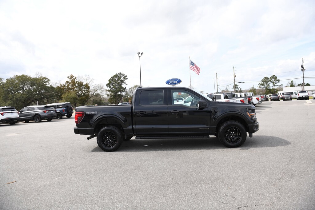 2024 Ford F-150 XLT Agate Black Metallic CARFAX One-Owner. Clean CARFAX. 3.5L PowerBoost Full-Hybrid V6, 4WD, 400W Cab & Bed Outlets, 6" Black Running Boards, Active Cruise Control, Adaptive Cruise Control w/Stop & Go, Auto High-beam Headlights, Black Exterior Badging, Black Grille, Body-Color Front & Rear Bumpers, Cloth 40/Console/40 Front Seats, Console Worksurface, Dark Interior Appliques, Electronic Locking w/3.73 Axle Ratio, Equipment Group 302A Mid, Floor Shifter, Ford BlueCruise Equipped (90-Day Trial), Front dual zone A/C, Heated Front Seats, Intelligent Access w/Push Button Start, Mobile Office Package, Navigation system: Connected Navigation, Partitioned Lockable Rear Storage, Power Glass Heated Sideview Mirrors, Power-Sliding Rear Window, Remote Start System w/Remote Tailgate Release, Unique Sport Cloth 40/Console/40 Front-Seats, Wheels: 18" Gloss Black, XLT Black Appearance Package, 4-Wheel Disc Brakes, 6 Speakers, ABS brakes, Air Conditioning, AM/FM radio: SiriusXM with 360L, Auto-dimming Rear-View mirror, Automatic temperature control, Brake assist, Cloth 40/20/40 Front Seat, Compass, Delay-off headlights, Driver door bin, Driver vanity mirror, Dual front impact airbags, Dual front side impact airbags, Electronic Stability Control, Emergency communication system: SYNC 4 911 Assist, Front anti-roll bar, Front Center Armrest w/Storage, Front fog lights, Front reading lights, Front wheel independent suspension, Fully automatic headlights, Gray Box Side Decal, Heated door mirrors, Illuminated entry, LED Sideview Mirror Spotlights, Low tire pressure warning, Occupant sensing airbag, Outside temperature display, Overhead airbag, Overhead console, Panic alarm, Passenger door bin, Passenger vanity mirror, Power door mirrors, Power driver seat, Power steering, Power windows, Radio data system, Radio: AM/FM SiriusXM w/360L, Rear reading lights, Rear step bumper, Rear window defroster, Remote keyless entry, Security system, Speed control, Split folding rear seat, Steering wheel mounted audio controls, SYNC 4 w/Enhanced Voice Recognition, Tachometer, Telescoping steering wheel, Tilt steering wheel, Traction control, Trip computer, Variably intermittent wipers, Voltmeter, 3.5L PowerBoost Full-Hybrid V6, 4WD, 400W Cab & Bed Outlets, 6" Black Running Boards, Active Cruise Control, Adaptive Cruise Control w/Stop & Go, Auto High-beam Headlights, Black Exterior Badging, Black Grille, Body-Color Front & Rear Bumpers, Cloth 40/Console/40 Front Seats, Console Worksurface, Dark Interior Appliques, Electronic Locking w/3.73 Axle Ratio, Equipment Group 302A Mid, Floor Shifter, Ford BlueCruise Equipped (90-Day Trial), Front dual zone A/C, Heated Front Seats, Intelligent Access w/Push Button Start, Mobile Office Package, Navigation system: Connected Navigation, Partitioned Lockable Rear Storage, Power Glass Heated Sideview Mirrors, Power-Sliding Rear Window, Remote Start System w/Remote Tailgate Release, Unique Sport Cloth 40/Console/40 Front-Seats, Wheels: 18" Gloss Black, XLT Black Appearance Package. 3.5L PowerBoost Full-Hybrid V6 4WD 10-Speed Automatic