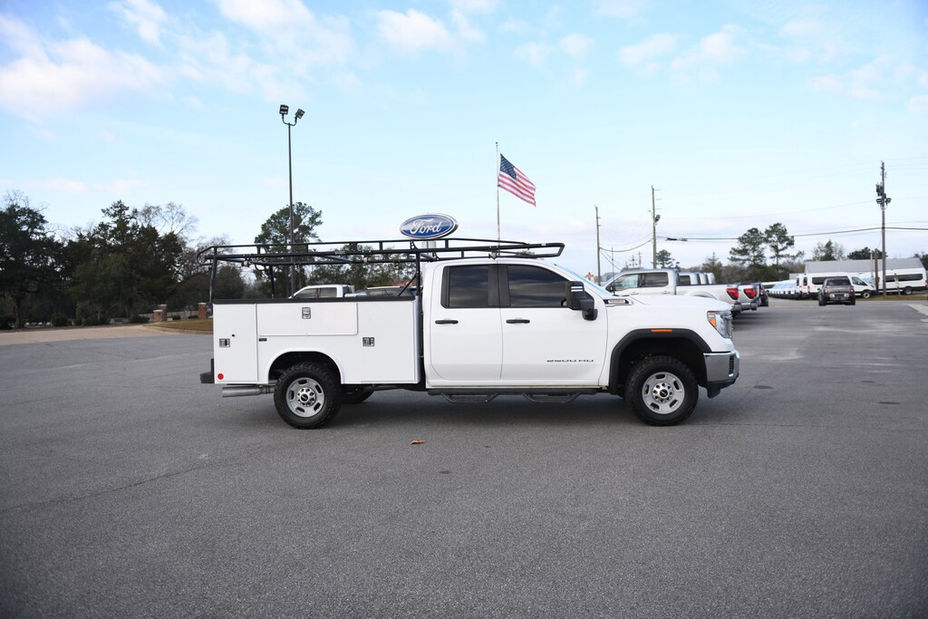 2022 GMC Sierra 2500HD Pro Summit White CARFAX One-Owner. READING SERVICE BODY, OVERHEAD MATERIALS RACK, TINT, BFG KO3 All Terrain Tires, 10-Speed Automatic, 4WD, Jet Black Vinyl, 17" Steel Wheels, 2-Speed Electronic Shift Transfer Case, 3.42 Axle Ratio, 4-Way Manual Driver Seat Adjuster, 4-Way Manual Passenger Seat Adjuster, Apple CarPlay/Android Auto, Chrome Surround Grille w/Black Mesh, Convenience Package, Deep-Tinted Glass, Electric Rear-Window Defogger, Front 40/20/40 Split-Bench Seats, Hill Descent Control, LED Cargo Area Lighting, Off-Road Suspension, Outside Power-Adjustable Black Mirrors, Power Rear Windows w/Express Down, Preferred Equipment Group 1SA, Remote Keyless Entry, Solar Absorbing Glass, Steering Wheel-Mounted Cruise Control, Suspension Package, Vinyl Seat Trim, X31 Off-Road Package. Duramax 6.6L V8 Turbodiesel 4WD 10-Speed Automatic