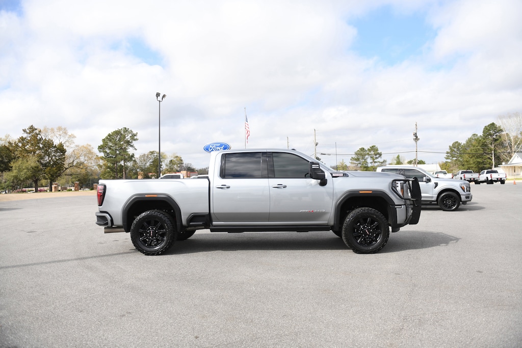 Recent Arrival! 2025 GMC Sierra 2500HD AT4 Sterling Metallic CARFAX One-Owner. Clean CARFAX. 10-Speed Automatic, 4WD, Jet Black With Kalahari Accents Leather, 10-Way Power Driver Seat Adjuster w/Lumbar, 10-Way Power Passenger Seat Adjuster w/Lumbar, 120-Volt Bed Mounted Power Outlet, 120-Volt Instrument Panel Power Outlet, 2 Charge-Only Rear USB Ports, 2 Charge/Data USB Ports Inside Center Console, 2 USB Ports, 2-Speed Active Transfer Case, Active Cruise Control, AT4 Preferred Package, AT4 Premium Plus Package, Auto High-beam Headlights, Bed View Camera w/2 Trailer Camera Provisions, Bose Premium 7-Speaker Sound System, Deep-Tinted Glass, Electric Rear-Window Defogger, Floor-Mounted Center Console, Front Bucket Seats, Front dual zone A/C, Front Prem Floor Liners w/Removable Carpet Insert, Front Rain-Sensing Wipers, Gloss Black Header Grille & Grille Insert Bars, Gooseneck/5th Wheel Prep Package, HD Surround Vision, Heated 2nd Row Outboard Seats, Heated Driver & Front Outboard Passenger Seats, Heated front seats, Heated rear seats, Heated steering wheel, Hill Descent Control, Inside Rearview Auto-Dimming Rear Camera Mirror, Keyless Open & Start, LED Cargo Area Lighting, LED Smoked Amber Roof Marker Lamps, Manual Tilt-Wheel/Telescoping Steering Column, Memory seat, Multicolor 15" Diagonal Head-Up Display, Off-Road High Clearance Step (LPO), OnStar Services Capable, Power Front Passenger Windows w/Express Up/Down, Power Sliding Rear Window w/Defogger, Power Sunroof, Preferred Equipment Group 4SB, Push Button Start, Rear Cross Traffic Alert, Rear Prem Floor Liners w/Removable Carpet Insert, Rear Wheelhouse Liners, Remote Vehicle Starter System, Safety Alert Seat, SiriusXM w/360L Trial Subscription, Spray-On Pickup Bedliner w/GMC Logo, Steering Wheel Audio Controls, Technology Package, Trailer Cam Provisions & Trailer Viewing Software, Trailer Side Blind Zone Alert, Ultrasonic Front & Rear Park Assist, Unauthorized Entry Theft-Deterrent System, Universal Home Remote, Ventilated Driver & Front Passenger Seats, Ventilated front seats, Wheels: 20" High Gloss Black 8 Spokes Aluminum, Wireless Charging, Wireless Phone Projection, X31 Off-Road Package, 1st & 2nd Rows All-Weather Floor Liners (LPO), 220-Amp Alternator, 4-Wheel Disc Brakes, 7 Speakers, ABS brakes, Air Conditioning, AM/FM radio: SiriusXM with 360L, Apple CarPlay/Android Auto, Auto-dimming door mirrors, Auto-dimming Rear-View mirror, Automatic Emergency Braking, Automatic temperature control, Brake assist, Buckle to Drive, Bumpers: body-color, Compass, Delay-off headlights, Driver door bin, Driver Memory, Driver vanity mirror, Dual front impact airbags, Dual front side impact airbags, Electronic Stability Control, Emergency communication system: OnStar, Engine Block Heater, Exhaust Brake, Following Distance Indicator, Forward Collision Alert, Front anti-roll bar, Front Center Armrest, Front fog lights, Front Pedestrian Braking, Front reading lights, Front wheel independent suspension, Fully automatic headlights, Heated door mirrors, Heavy-Duty 80 Amp Battery, Hitch Guidance w/Hitch View, Illuminated entry, In-Vehicle Trailering System App, IntelliBeam Automatic High Beam On/Off, Lane Departure Warning System, Low tire pressure warning, Occupant sensing airbag, Off-Road Suspension, Outside temperature display, Overhead airbag, Overhead console, Panic alarm, Passenger door bin, Passenger vanity mirror, Perforated Leather-Appointed Front Seat Trim, Pickup Box, Power door mirrors, Power driver seat, Power steering, Power windows, Power-Retractable Black Assist Steps, Radio: AM/FM w/Premium GMC Infotainment System, Rain sensing wipers, Rear reading lights, Rear seat center armrest, Rear step bumper, Rear window defroster, Remote keyless entry, Security system, Speed control, Speed-sensing steering, Split folding rear seat, Steering wheel mounted audio controls, Tachometer, Telescoping steering wheel, Tilt steering wheel, Traction control, Trip computer, Turn signal indicator