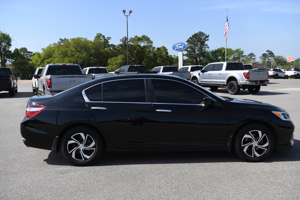 Recent Arrival! 2017 Honda Accord LX Black Clean CARFAX. Black Cloth, 16" Alloy Wheels, 4 Speakers, 4-Wheel Disc Brakes, ABS brakes, Air Conditioning, Alloy wheels, AM/FM radio, Automatic temperature control, Brake assist, Bumpers: body-color, CD player, Cloth Seat Trim, Delay-off headlights, Driver door bin, Driver vanity mirror, Dual front impact airbags, Dual front side impact airbags, Electronic Stability Control, Exterior Parking Camera Rear, Four wheel independent suspension, Front anti-roll bar, Front Bucket Seats, Front Center Armrest, Front dual zone A/C, Front reading lights, Fully automatic headlights, Illuminated entry, Leather Shift Knob, Low tire pressure warning, Occupant sensing airbag, Outside temperature display, Overhead airbag, Overhead console, Panic alarm, Passenger door bin, Passenger vanity mirror, Power door mirrors, Power steering, Power windows, Radio data system, Radio: 160-Watt AM/FM Audio System, Rear anti-roll bar, Rear seat center armrest, Rear window defroster, Remote keyless entry, Security system, Speed control, Speed-sensing steering, Speed-Sensitive Wipers, Steering wheel mounted audio controls, Tachometer, Telescoping steering wheel, Tilt steering wheel, Traction control, Trip computer, Variably intermittent wipers, Black Cloth. 2.4L I4 DOHC i-VTEC 16V FWD CVT